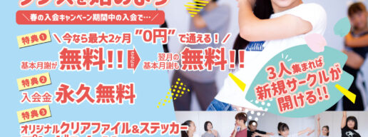 DANSPORT春の入会キャンペーンご好評のため期間延長決定!期間は5月1日(木)から5月31日(土)まで! キャンペーン① \ 最大2ヶ月”0円”で通える!/入会月の基本月謝が初月無料&翌月の基本月謝も無料 キャンペー … 続きを読む 春の入会キャンペーンご好評のため期間延長決定!